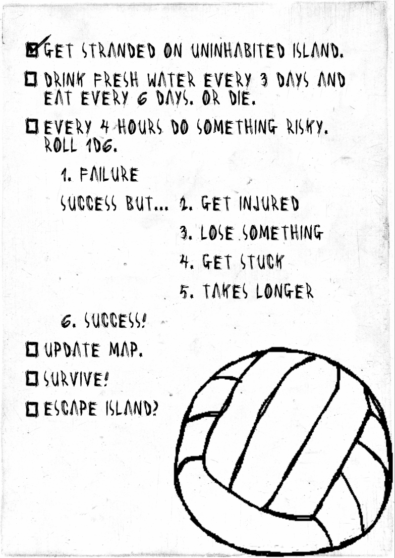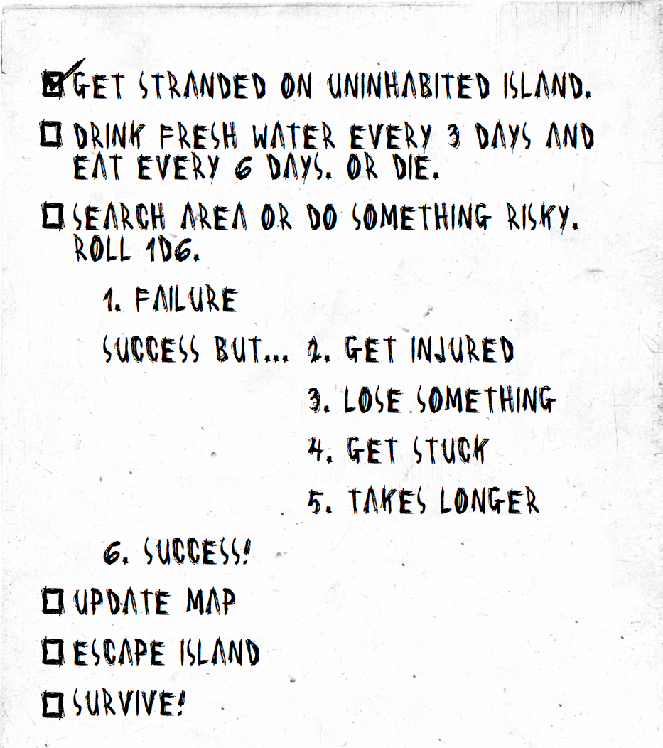 A minimalist TTRPG about surviving being stranded on a deserted, uninhabited island.